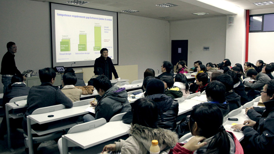 接下来王巍博士又总结了现在的教育模式中普遍缺乏训练的技能,提醒大家要懂得怎么安排自己学习时间,以适应行业转变和产业需求。 1,icon & graphic设计的能力,就业时是一块很好的敲门砖。 2,informatin visualization,用简单的统计分析数据,抽取中间的联系,通过设计手段表现出来。 3,os/ow programming,某一些操作系统和软件编程的能力,起码知道什么样的人什么样的流程能够实现设计。这样在实际操作过程中也能避免拍脑袋想概念。 4 pm/pdm training,一定的项目管理能力能帮助设计师把concept转变为project。