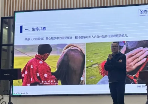 首先在“生命共感”层面,吉日木图老师以纪录片《哭泣的骆驼》为例,与同学们讲述了草原上人们与动物之间深刻的情感羁绊,展现出了游牧的悲悯之美。