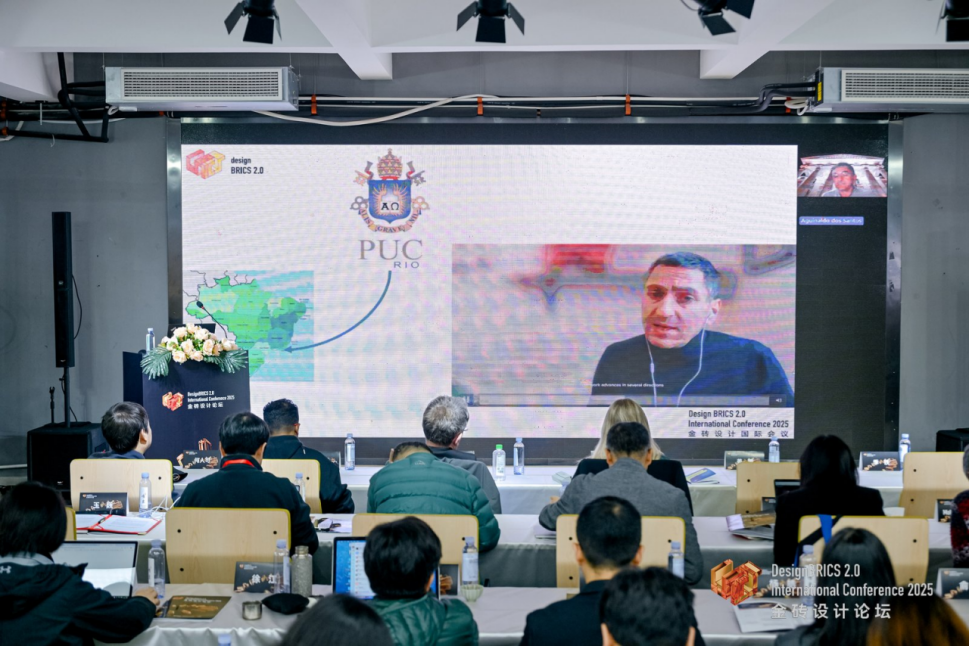巴西巴拉那联邦大学Aguinaldo dos Santos教授及四位巴西专家围绕中巴可持续设计合作展开探讨,指出气候变化是两国核心共同挑战,需通过设计协作解决,并且提出拓展人员交流、升级合作模式、加强文化沟通三大路径。巴西多位教授还同步分享了研究成果:Pescador 教授团队专注可持续材料研发;Hecate 教授介绍了亚马逊地区产品服务系统项目,探索本土传统知识与现代设计的融合;Leonardo 教授、Vivian 教授则分别展示了可持续住房设计、社会转型设计领域的成果。最后,团队表达了深化合作的期待。