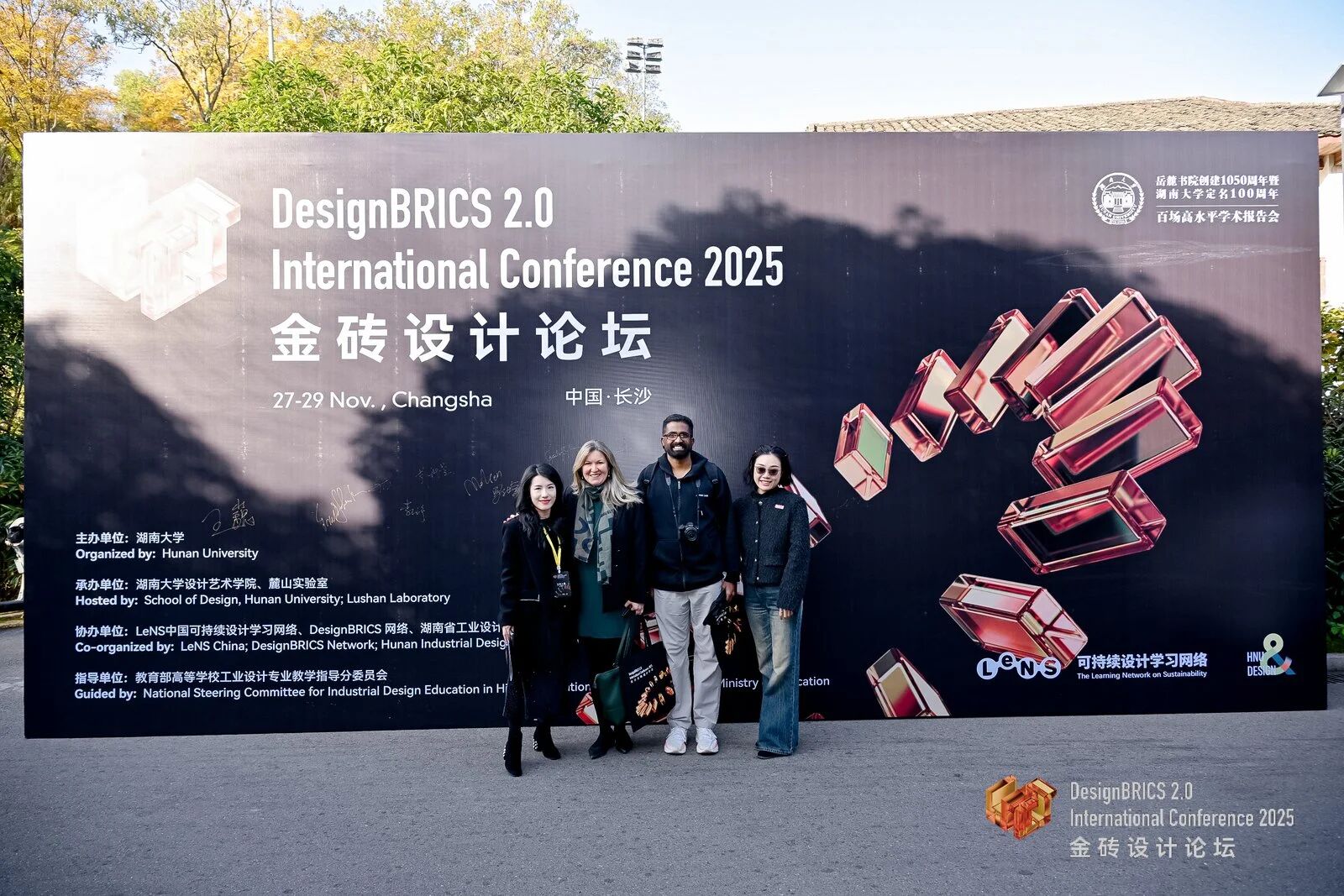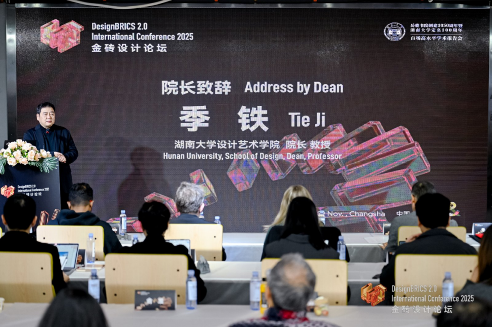 2025 年 11 月 28 日,由湖南大学主办,湖南大学设计艺术学院、麓山实验室承办,LeNS中国可持续设计学习网络、DesignBRICS 金砖设计网络、湖南省工业设计协会协办,教育部高等学校工业设计专业教学指导分委员会指导的金砖设计2.0论坛(DesignBRICS 2.0 International Conference)在湖南大学麓山实验报告厅顺利开幕,并同期举办中国可持续设计学习网络LeNS China2025学术年会。本次论坛大会以 “人工智能与可持续发展:超越联合国可持续发展目标(AI & Sustainability: Beyond the UN SDGs)” 为主题,邀请来自全球知名高校、科研机构、国际组织与产业界的专家学者齐聚岳麓山下,共同探讨人工智能时代的可持续设计新范式、新路径和新使命。