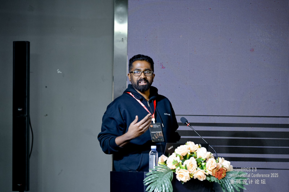 歌尔股份Alpha Labs首席工业设计师Sivakumar Thangavelu的报告聚焦混合现实(MR)与机器人技术的深度融合。他强调,尽管MR设备与机器人系统都依赖高精度空间感知、实时响应与直观交互,但二者在形态与功能上存在本质差异,核心挑战在于如何统一设计语言与交互模型,以构建整体性的人本系统。基于其在MR硬件、机器人平台与用户体验领域十余年的实践,他分享了团队构建的无缝人机协同系统级设计框架,展示了在可穿戴设备、机械运动控制及情感化体验塑造方面的设计探索。他同时介绍了团队在耐用且可生物降解材料上的研究进展,阐述如何以系统化方法整合人体工学、美学与可制造性,将新兴技术落地为以人为本的产品体验。
