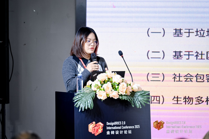 来自哈尔滨工业大学的朱逊教授分享了针对东北地域特色的教学改革。面对“黑土地表土剥离”这一严峻生态问题,哈工大在产品设计新专业中引入“环境与营养”辩论环节,引导学生从规划与修复角度介入,通过生物多样性设计课程,探索设计在生态恢复中的实际效能。
