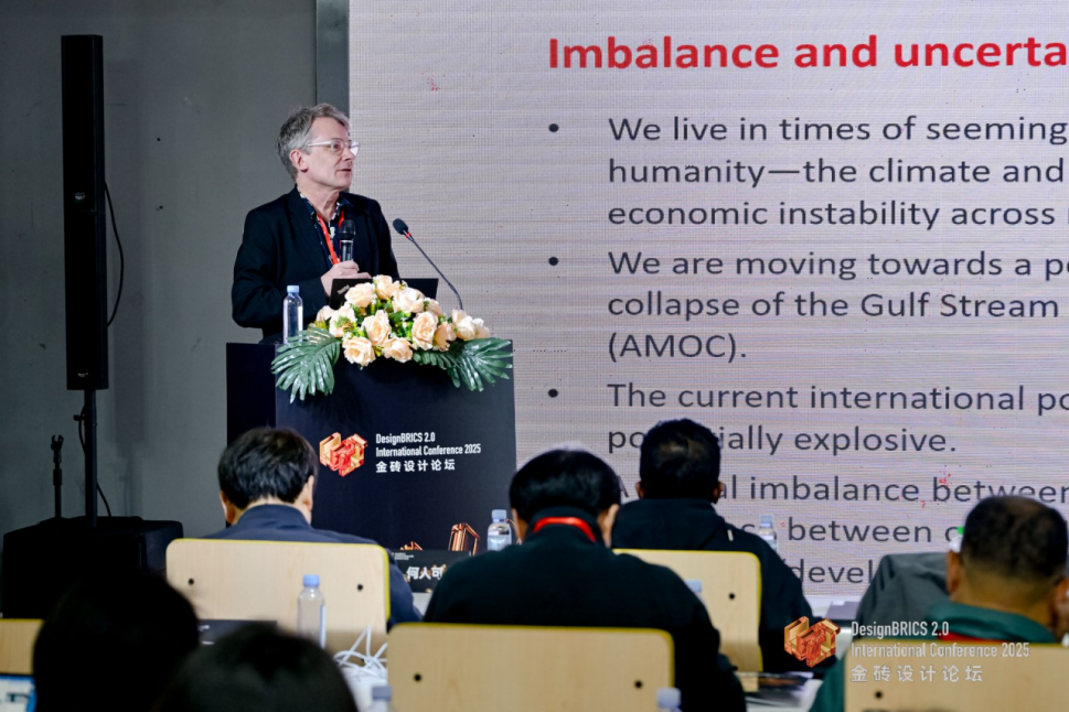 最后,香港理工大学设计学院Angus Campbell副教授结合其在南非18年的设计实践与理论研究,探讨了地图可视化与AI算法在设计决策中的应用边界与优化方向,呼应香港理工大学在智能设计领域的研究特色。此外,他明确表达了与香港及中国内地高校、企业深化合作的期待,希望通过联合研发、学生交流等形式,推动 AI 技术在可持续设计领域的跨区域落地。至此,本次论坛金砖设计主旨演讲环节圆满告一段落。