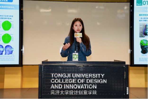 杜雨佳以《头戴显示设备人机适配性设计工具开发与研究》为题作报告,介绍了其在头戴式显示设备人因舒适度方向的研究工作。报告围绕现有产品在适配性设计上的不足可能引发的佩戴不适、疼痛疲劳及潜在安全隐患,报告融合体测量学、人机工效学、计算机图形学与机器学习等多学科方法,以系统化、工程化设计路径为主线,从头面部人因特征与产品适配关系出发,构建了面向虚拟数字场景的人机适配仿真预测方法,并以仿真结果反向驱动产品形态优化,形成了由数据到设计的闭环流程。