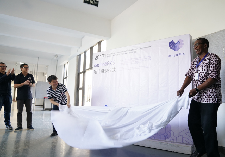 作为研讨会的重头内容,在嘉宾和现场观众的见证下,何人可院长与Mugendi主席共同揭开幕布,宣布designBRICS项目启动。