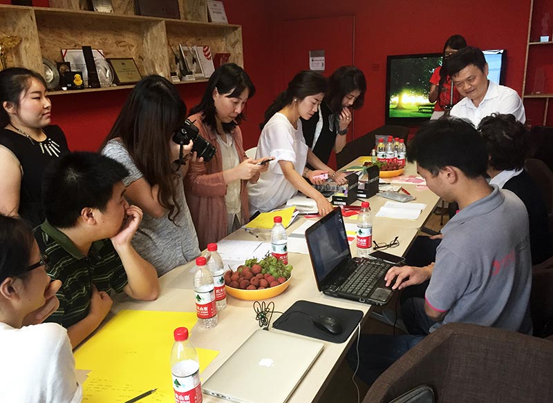 SamSung SID Advanced Design Team Director Kang Sookyung and Senior Designer (China Division Officer) Yu Myung Sun visited Kejiting and Hunan University today. Professor He met SamSung representatives and had a lunch meeting together. Prof. Ahn Sunghee gave a project process presentation of co-operate research project between SamSung SDI and Hunan University at Kejiting this afternoon. After that, Prof. Ahn Sunghee host an expert interview and workshop at School of Design. SamSung representatives, experts from Hunan Kejitng, and teachers and students from Hunan University were invited to the session.