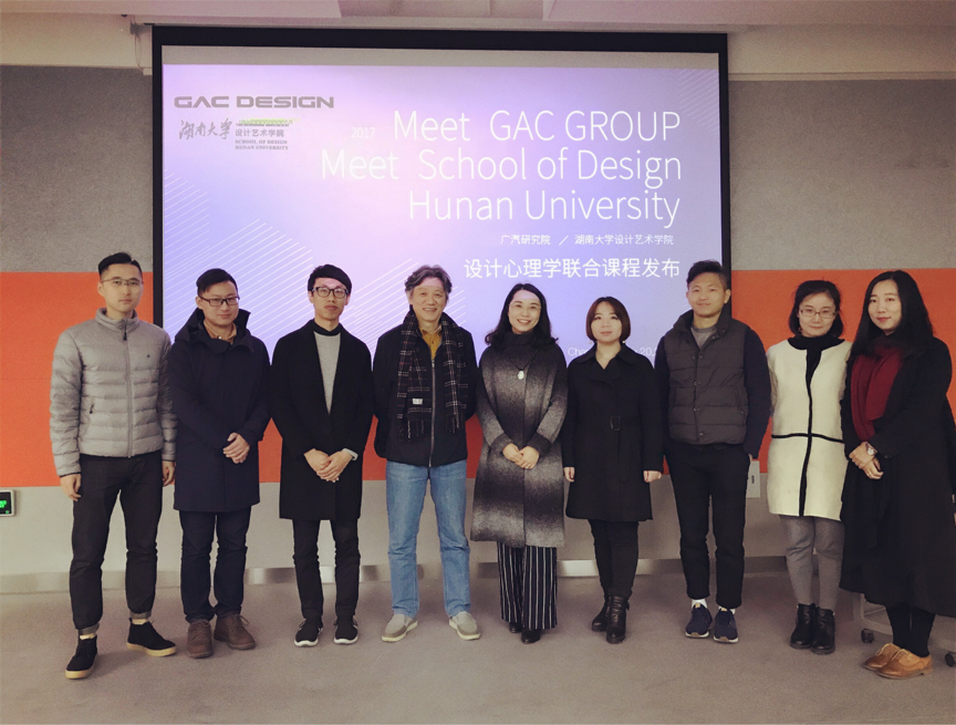 2017年11月20日上午9:00,广汽研究院概念与造型设计中心与湖南大学设计艺术学院《设计心理学》联合课程在湖南大学成功发布。广汽研究院设计研究室主任王丹与前瞻设计部多位设计师共同参与了本次联合课程发布,并围绕合作选题与湖大师生展开了精彩讨论与现场互动。