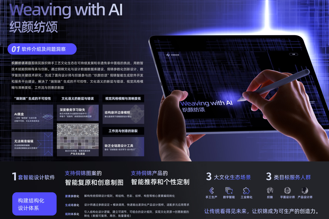 作品名称:织颜纺颂——数智技术赋能非遗民族织锦传承与创新