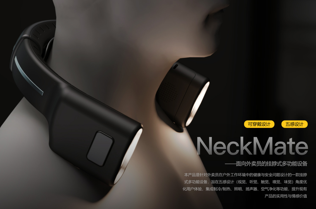 作品名称:NeckMate——面向外卖员的挂脖式多功能设备